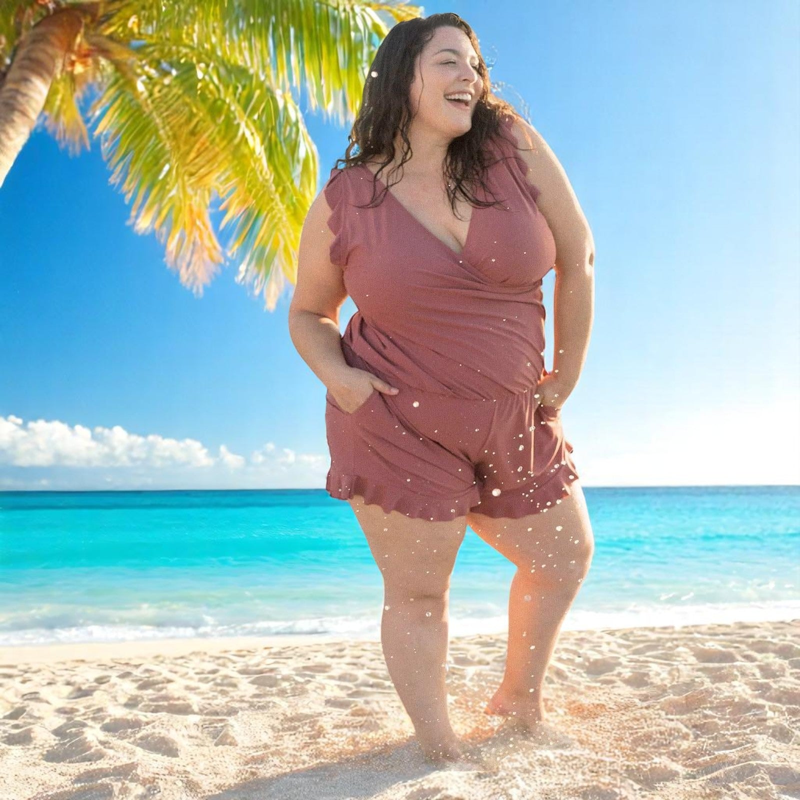 Disfruta de un estilo sin esfuerzo y máxima libertad de movimiento con el mono de baño cómodo Marta – ideal para días activos en la playa y momentos relajantes en verano. El corte holgado y el material de seco rápido ofrecen una comodidad incomparable, ya sea chapoteando o tomando el sol.