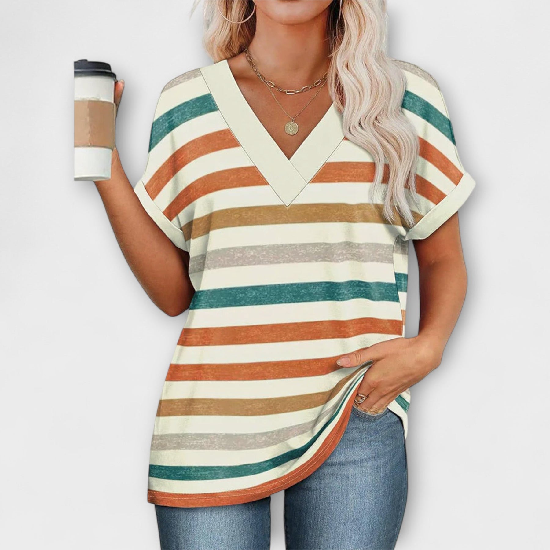 La blusa de rayas coloridas de corte relajado de Melina es la opción perfecta para un look casual con estilo. Con su diseño alegre y cómodo, es ideal para días relajados, salidas con amigas o planes de fin de semana donde el confort no está reñido con el estilo.