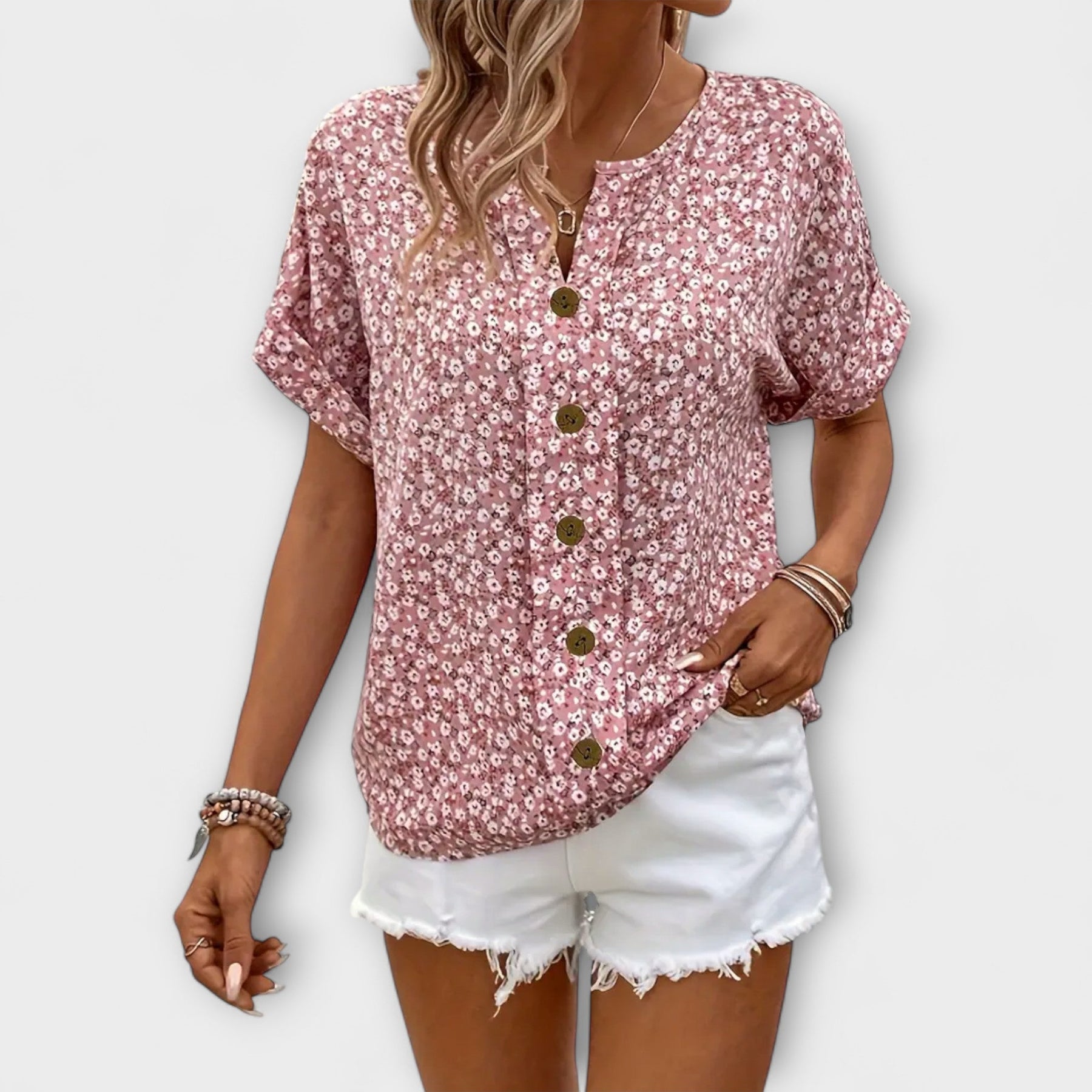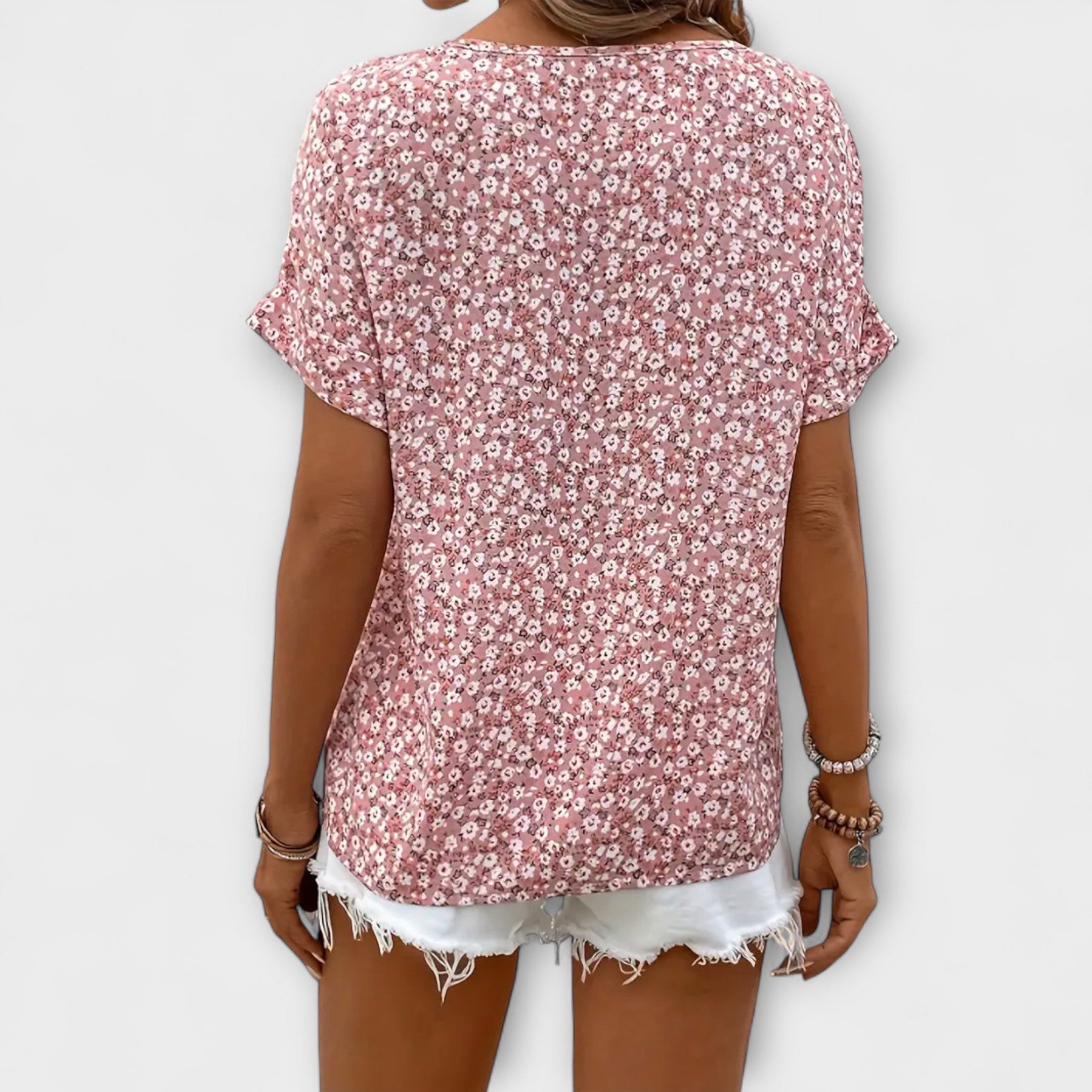 La blusa con estampado floral de Susanna representa la elegancia sin esfuerzo y el encanto femenino. El delicado diseño floral y el corte favorecedor la convierten en la compañera perfecta para días cálidos, salidas relajadas o noches elegantes.