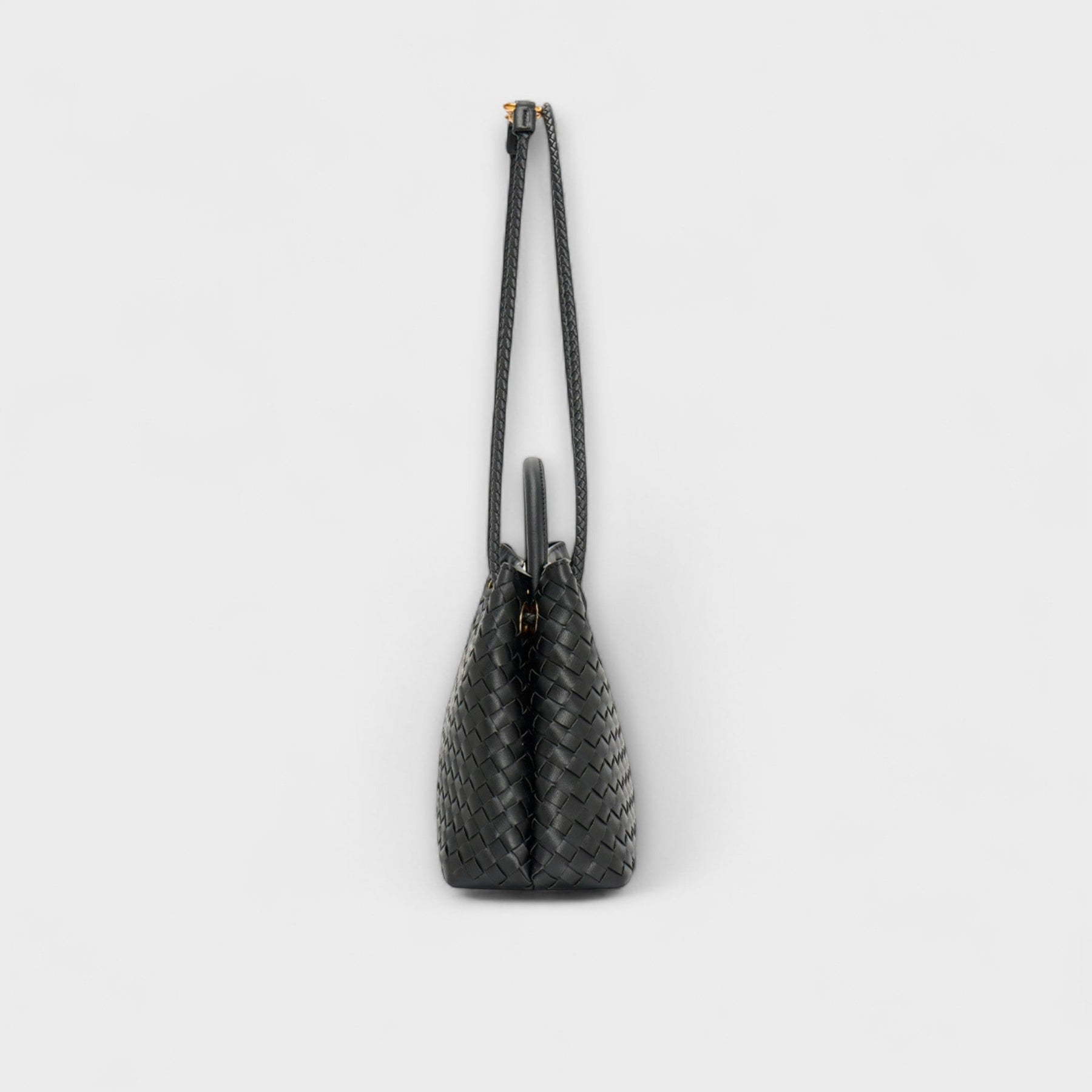 Este pequeño bolso trenzado destaca por su estructura única y un aspecto elegante. El diseño tejido a mano le da a tu atuendo un encanto sutil, mientras que su tamaño compacto es ideal para llevar tus esenciales con estilo.