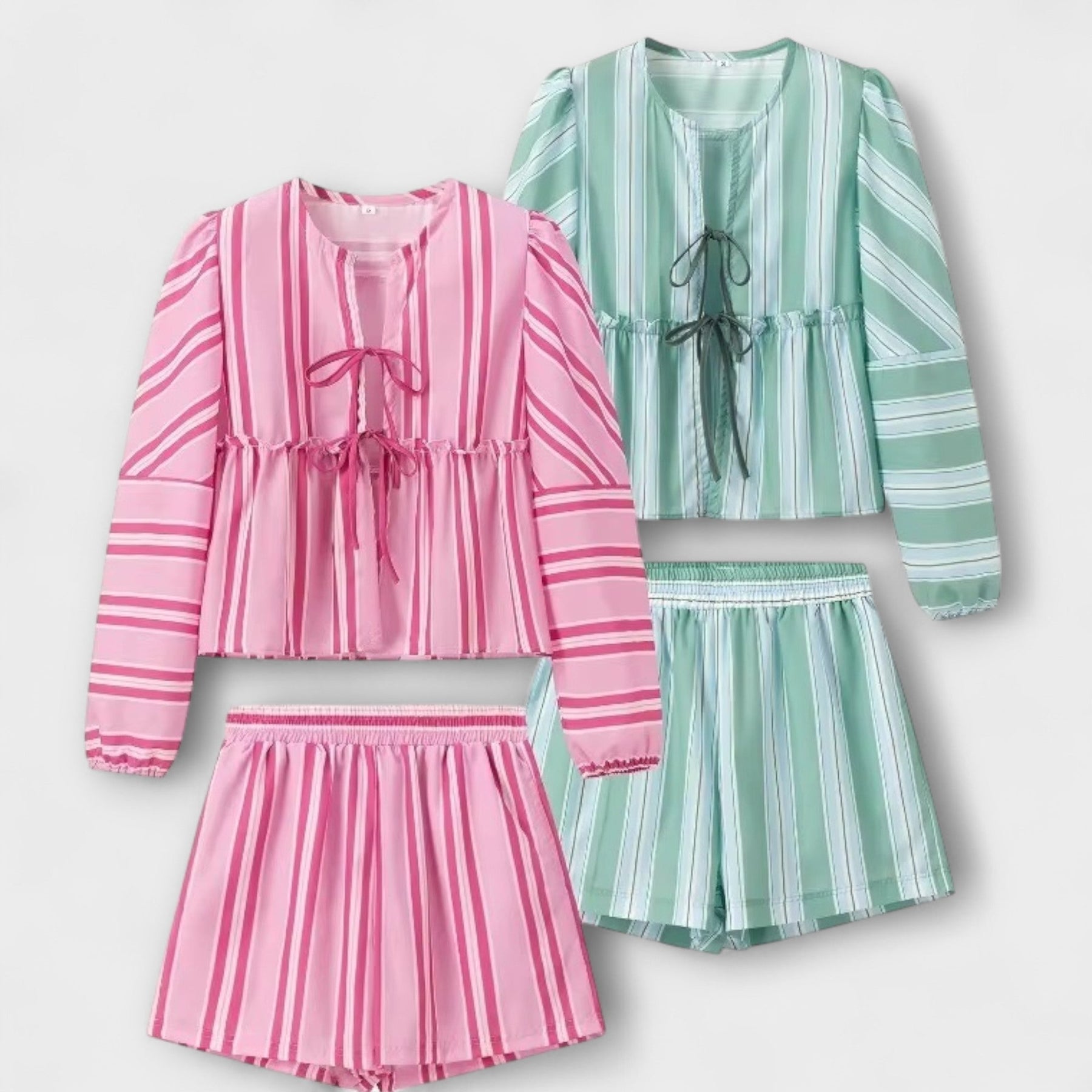 El conjunto de verano Rosita ofrece el equilibrio perfecto entre comodidad y elegancia. Su diseño liviano y transpirable lo hace ideal para días soleados, ya sea en vacaciones, en la ciudad o en un almuerzo relajado con amigos.