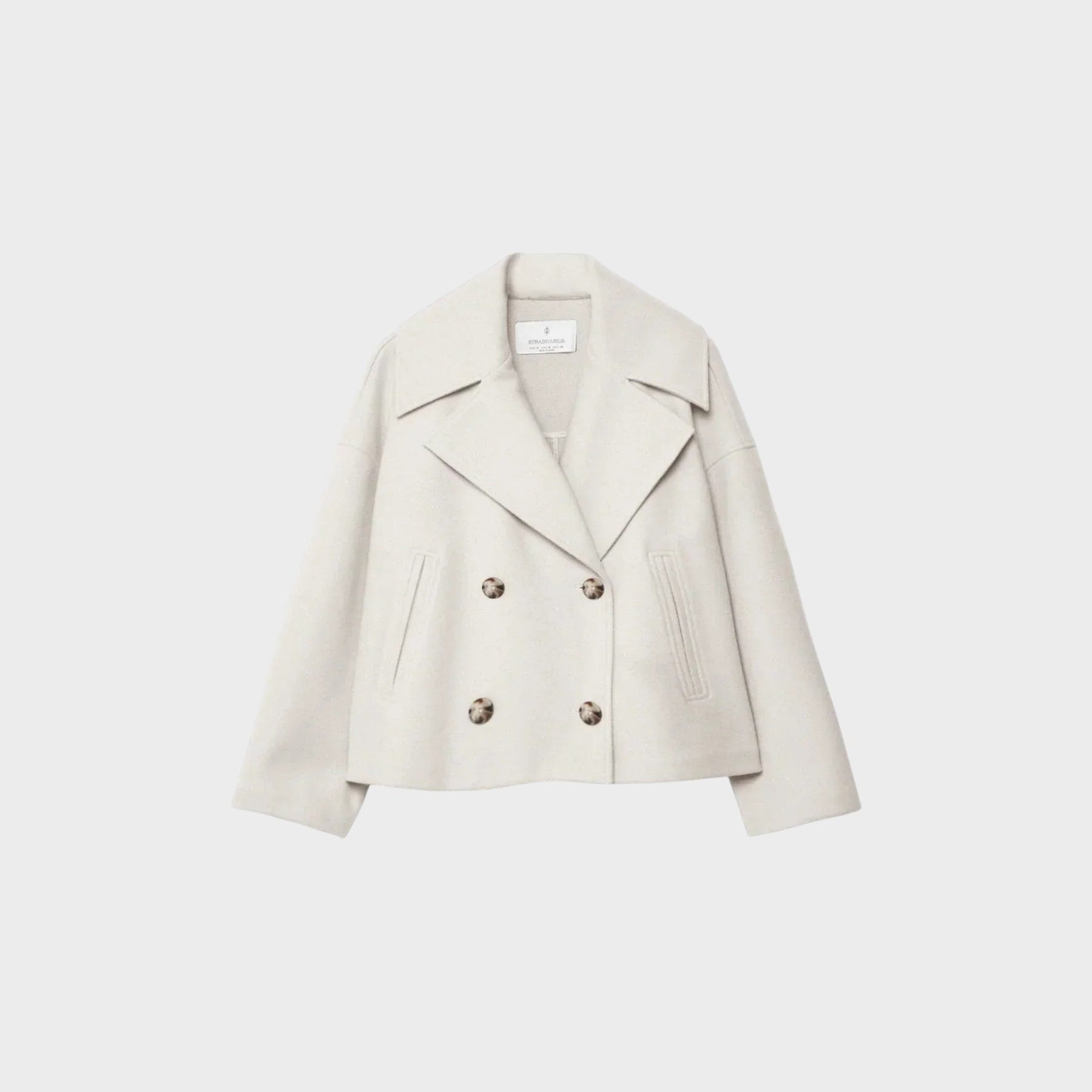 Blanka jakna donosi moderan i šik izgled s daškom elegancije. Kratka silueta i dvostruko kopčanje naglašavaju struk i dodaju ženstvenost, dok kvalitetan materijal pruža udobnost i toplinu. Savršena je za prijelazne sezone ili kao chic završni sloj u svakoj kombinaciji.