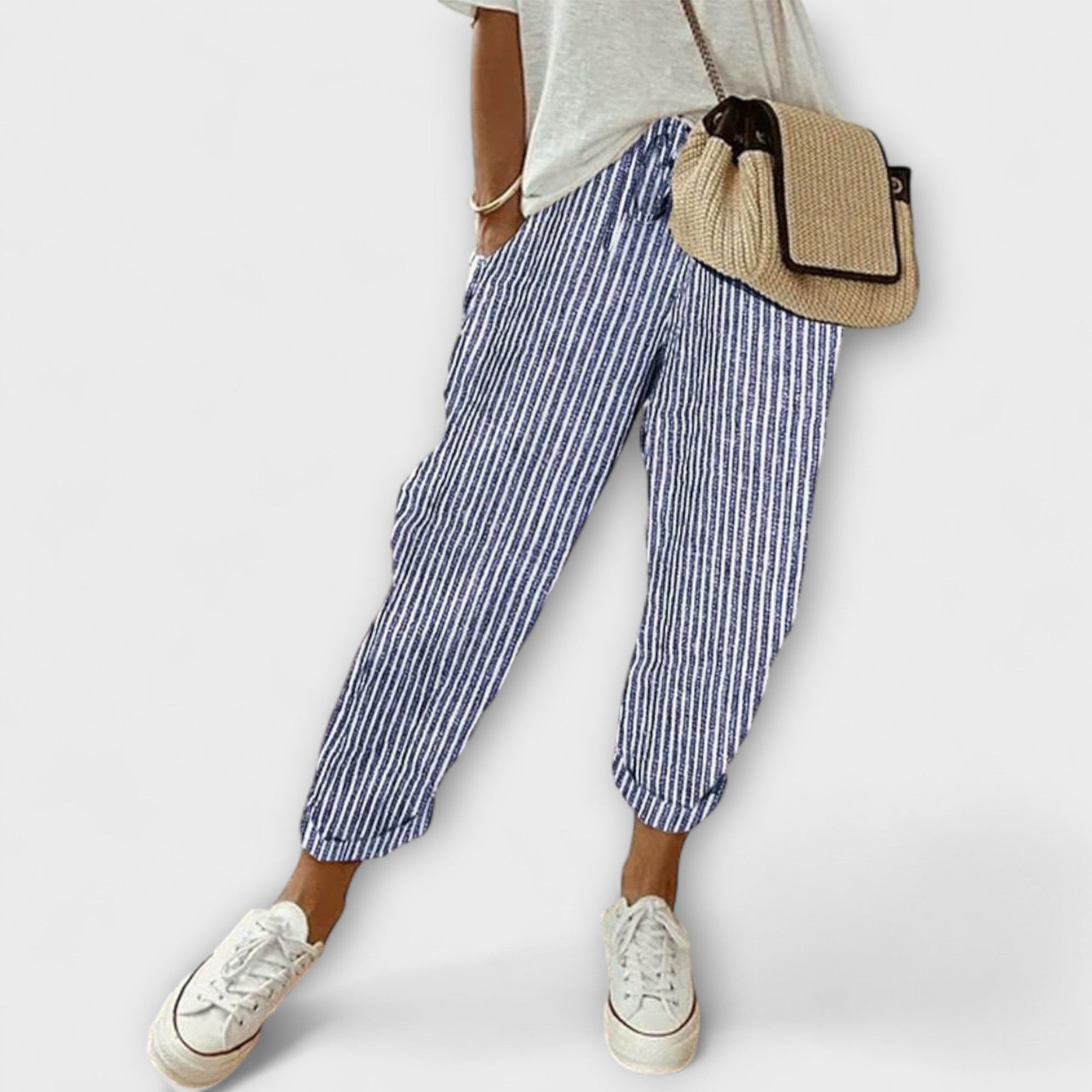 Los elegantes pantalones de lino de Chiara son la elección perfecta para los días cálidos. Su material ligero y transpirable proporciona una sensación fresca al usarlo y previene el sudor incómodo, ideal para el verano, la vida cotidiana o looks de negocios elegantes. Para mujeres que desean lucir con estilo y relajadas incluso en el calor.