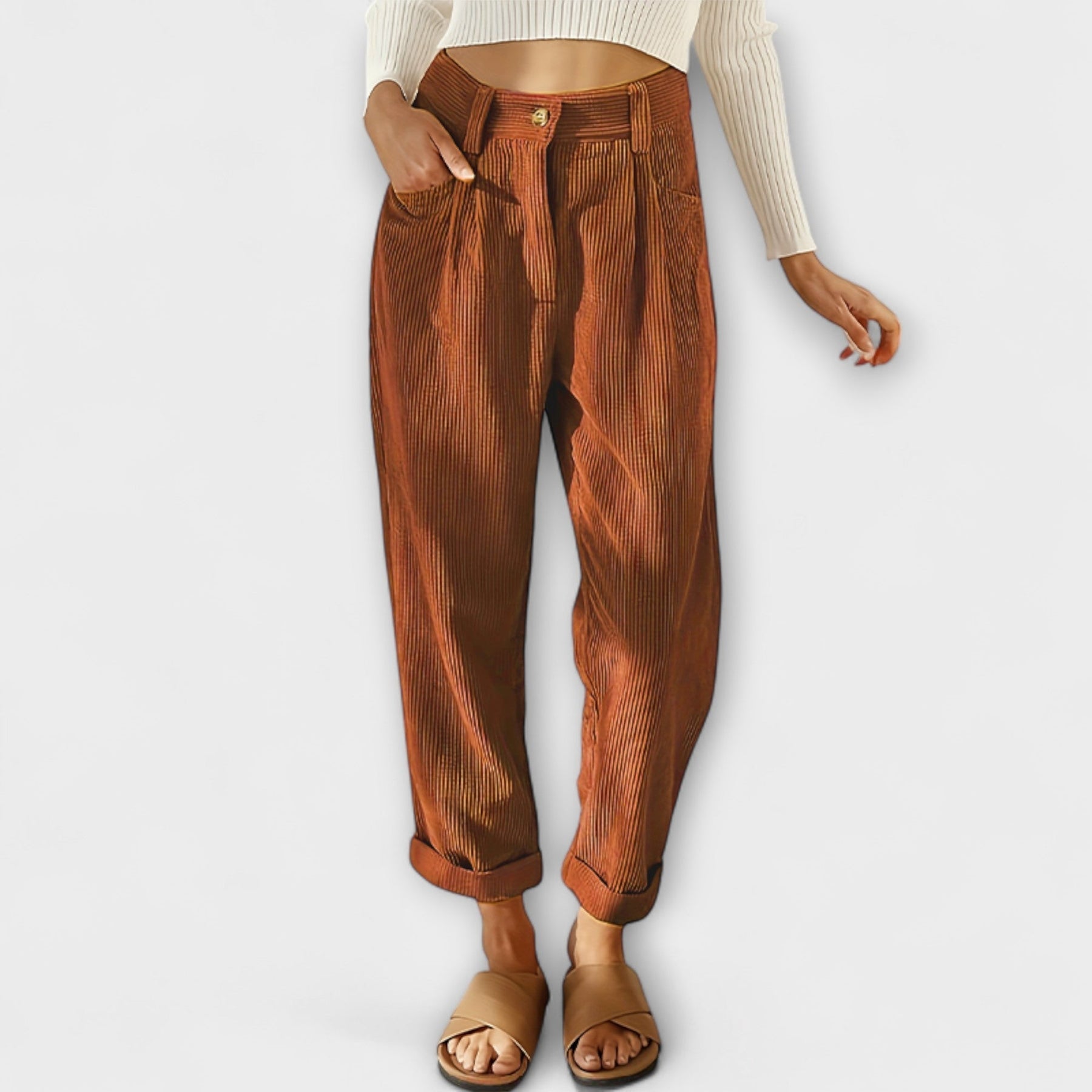 Los pantalones de pana de Eva son el compañero perfecto para looks casuales y relajados. Con su suave tejido de pana, la cintura elástica y el corte holgado, ofrecen una libertad de movimiento incomparable, ideal para largos días fuera de casa o horas cómodas en casa.