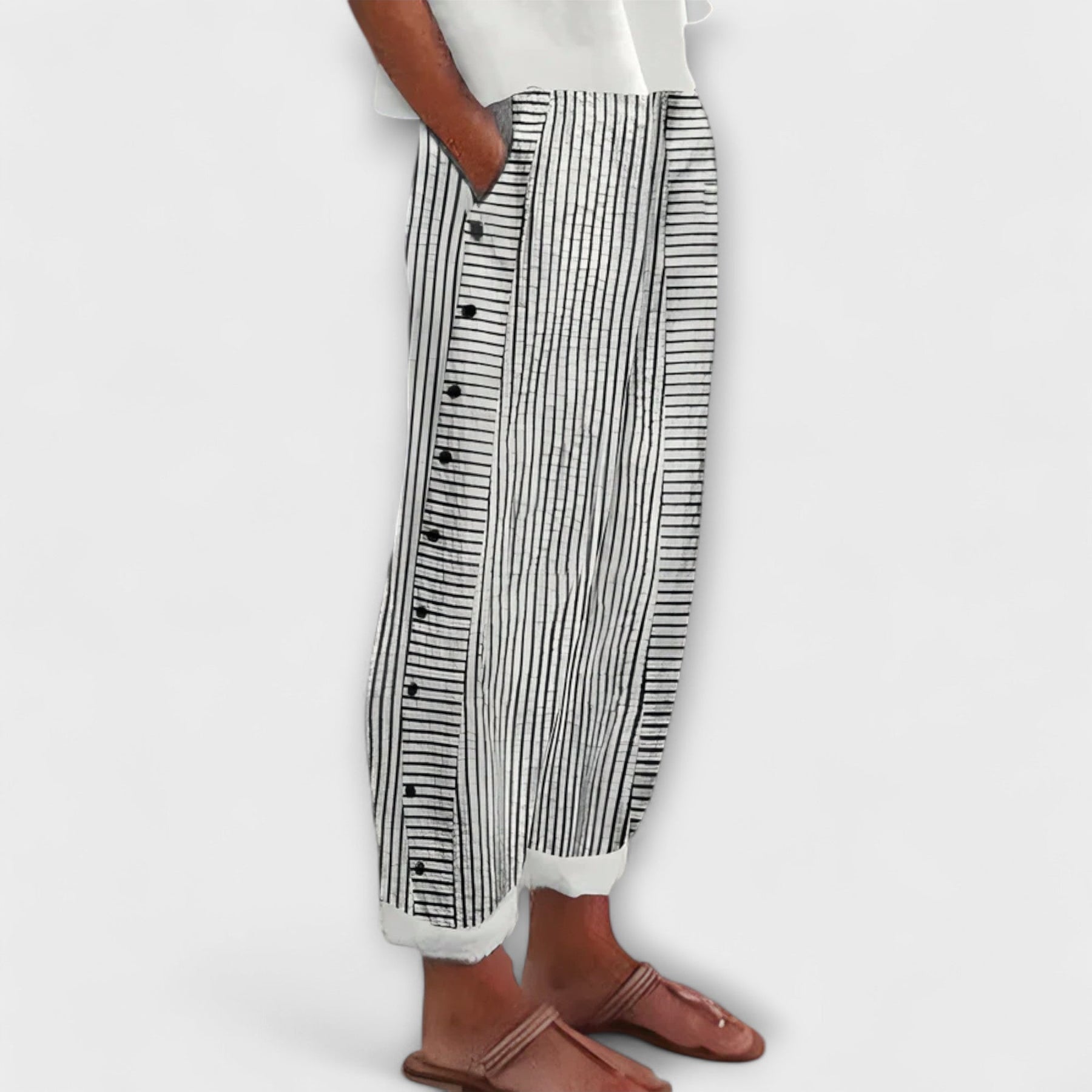 Los pantalones de verano a rayas de Michela combinan una comodidad ligera con una elegancia estilosa. El corte favorecedor y el material transpirable los convierten en la elección ideal para días cálidos, ya sea durante un paseo por la ciudad, en vacaciones o en casa.