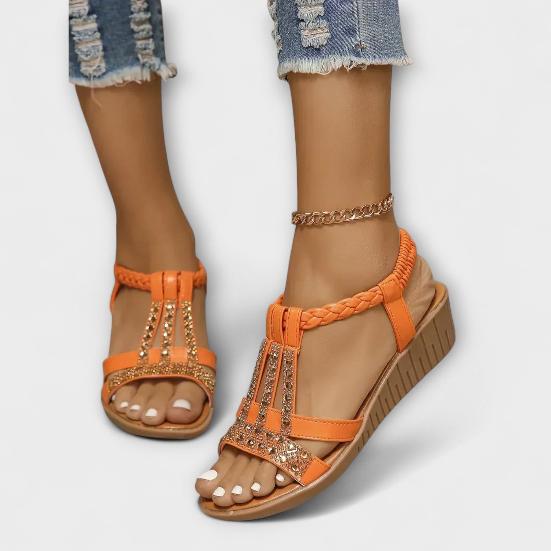 Las sandalias brillantes de verano de Miriam aportan un glamour resplandeciente a tu guardarropa de verano. Con sus detalles brillantes, añaden acentos elegantes y le dan a cada atuendo ese toque especial. Ideales para días relajados o ocasiones festivas, estas sandalias te ofrecen comodidad y estilo en perfecta armonía.