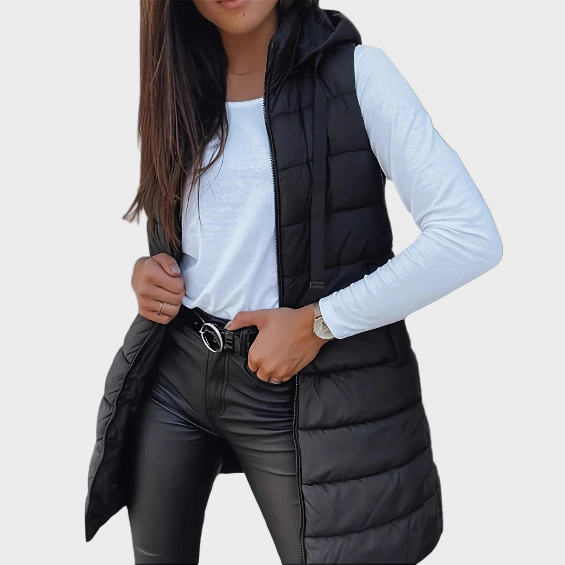 Raquel - Ležerni dugi prsluk s kapuljačom bez rukava