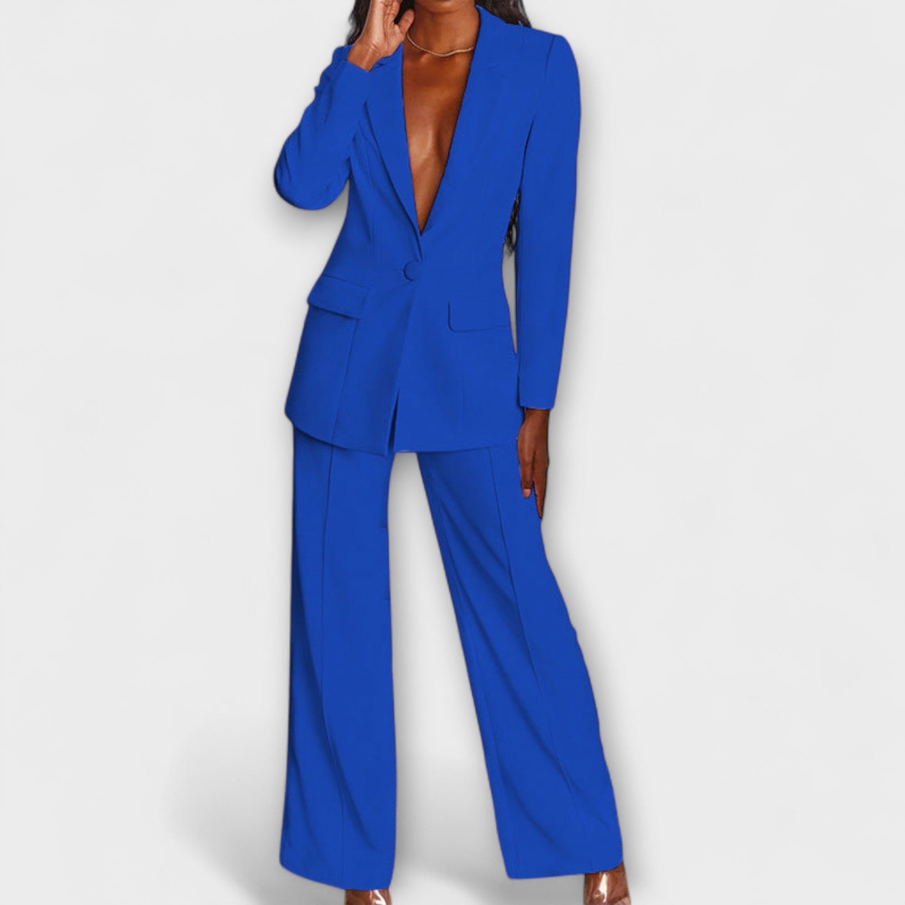 El elegante conjunto de blazer y pantalones de Monica representa una sofisticada elegancia y el máximo confort. En los colores más trendy de la temporada, este conjunto ofrece el equilibrio perfecto entre estilo y comodidad. Ya sea combinado de manera formal o casual, este conjunto añade un toque de estilo a cualquier ocasión.